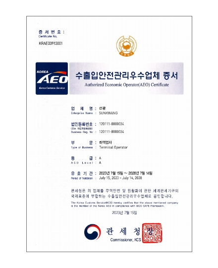 • 선광 AEO 인증서
